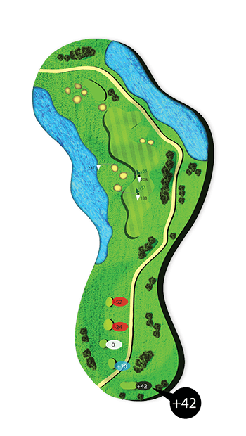 A strategic hole, taking the fairway bunkers into consideration is critical for success. The addition of a new fairway bunker, deceptively placed on this right to left sloping fairway towards water, extra thought is required to decide if the carry is a worthwhile risk. Big hitters will be rewarded with a short chip to a sloping green; best to be below the pin when the green speeds are high.